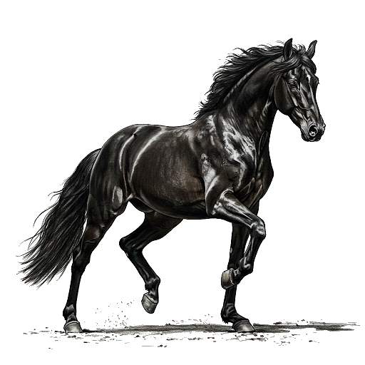 Fríský kůň – Elegantní černý krasavec, vždy vraník. Frísové mají hustou hřívu, ocas a často vlnité chlupy. Čistě černé zbarvení je pro toto plemeno typické a žádoucí.